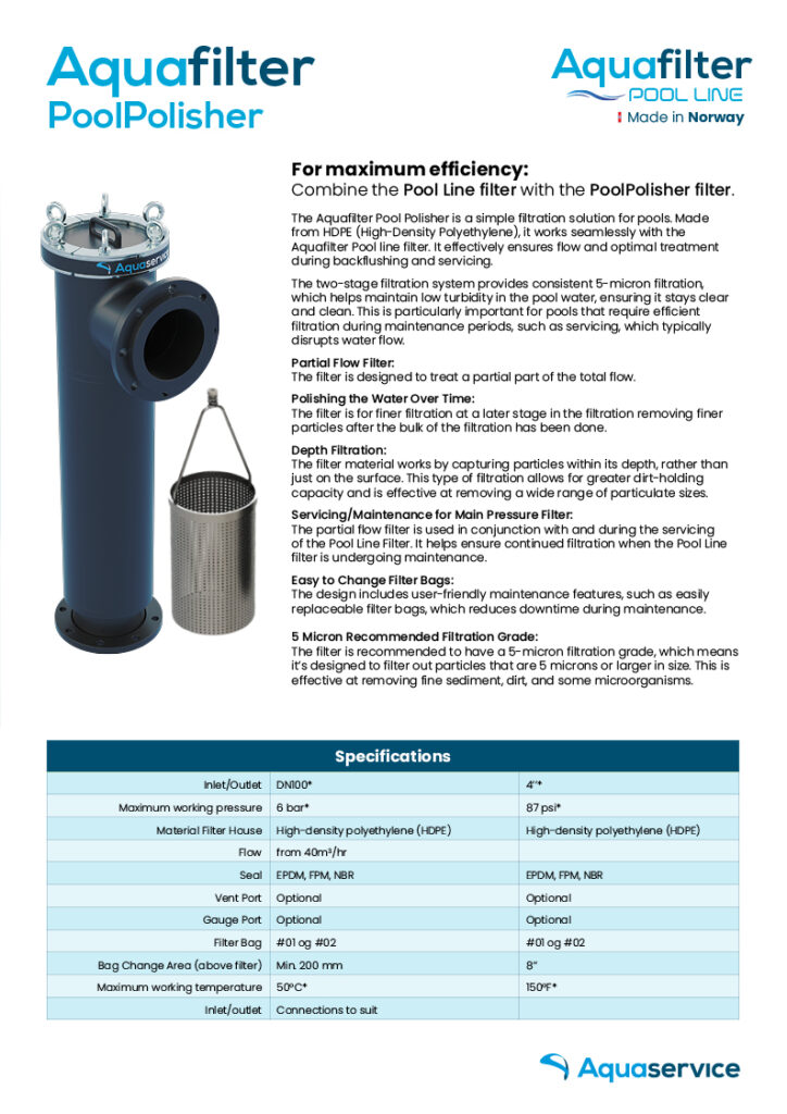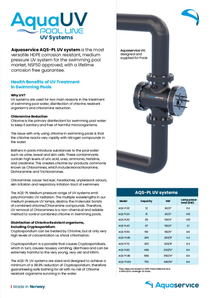 Aquaservice offers Self Cleaning, no media filters made from HDPE and designed down to 5micron, along with a Swimming Pool UV range.